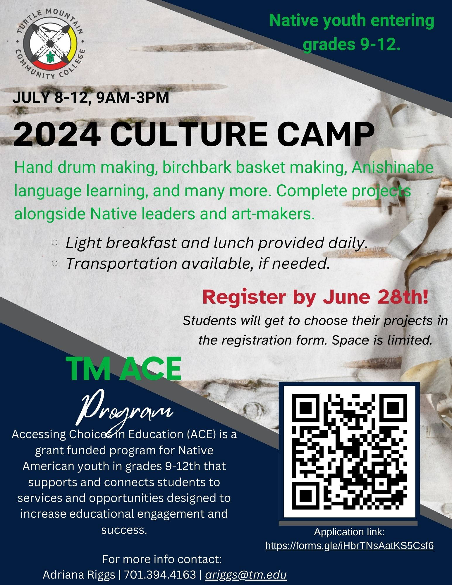 « All Events This event has passed. TMCC Culture Camp July 8, 2024 @ 9:00 am - July 12, 2024 @ 3:00 pm « Chief Little Shell Memorial Pow-wow Heart of the Turtle Mountain Food Pantry Grand Opening » Add to calendar Google Calendar iCalendar Outlook 365 Outlook Live Details Start: July 8, 2024 @ 9:00 am End: July 12, 2024 @ 3:00 pm